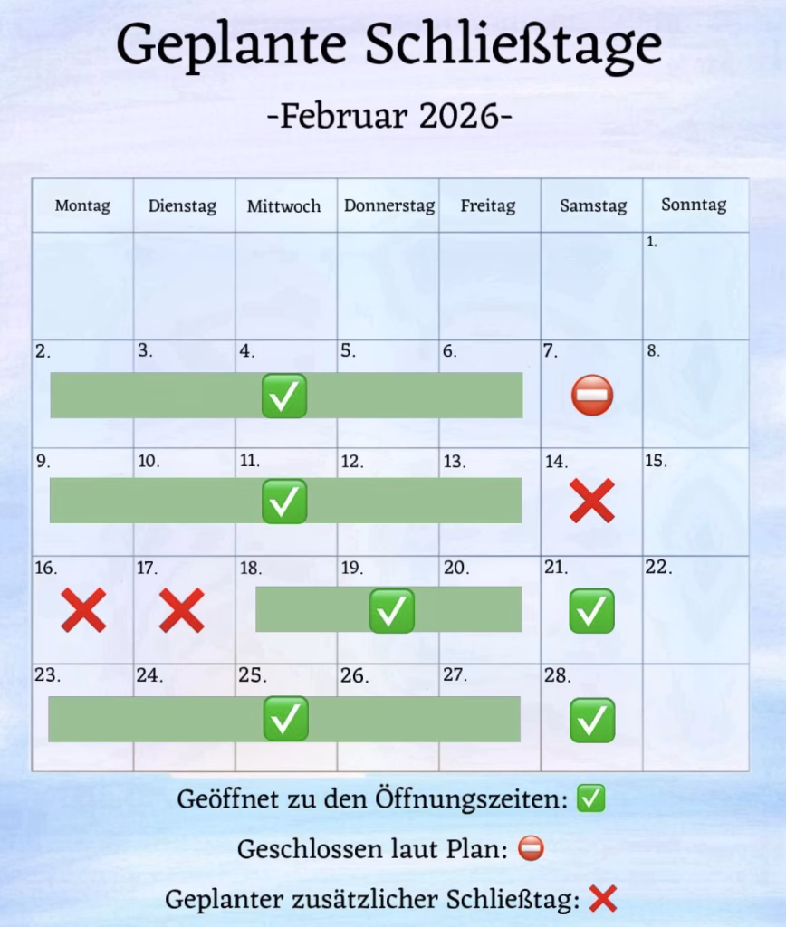 Geplanter zusätzlicher Schließtag: 14.02., 16.–17.02.2026